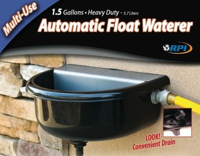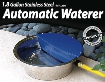 The largest of our waterers, this 1.8-gallon automatic stainless waterer attaches to any garden hose and provides consistent fresh water for your pets at all times. The cover is made from high-density polypropylene which protects the mechanical float valve providing safety and reliability. It is rust-proof, sun-resistant and durable. Will fulfill the hydration needs of your dogs, sheep, goats, horses, or any other medium to large-sized animals.